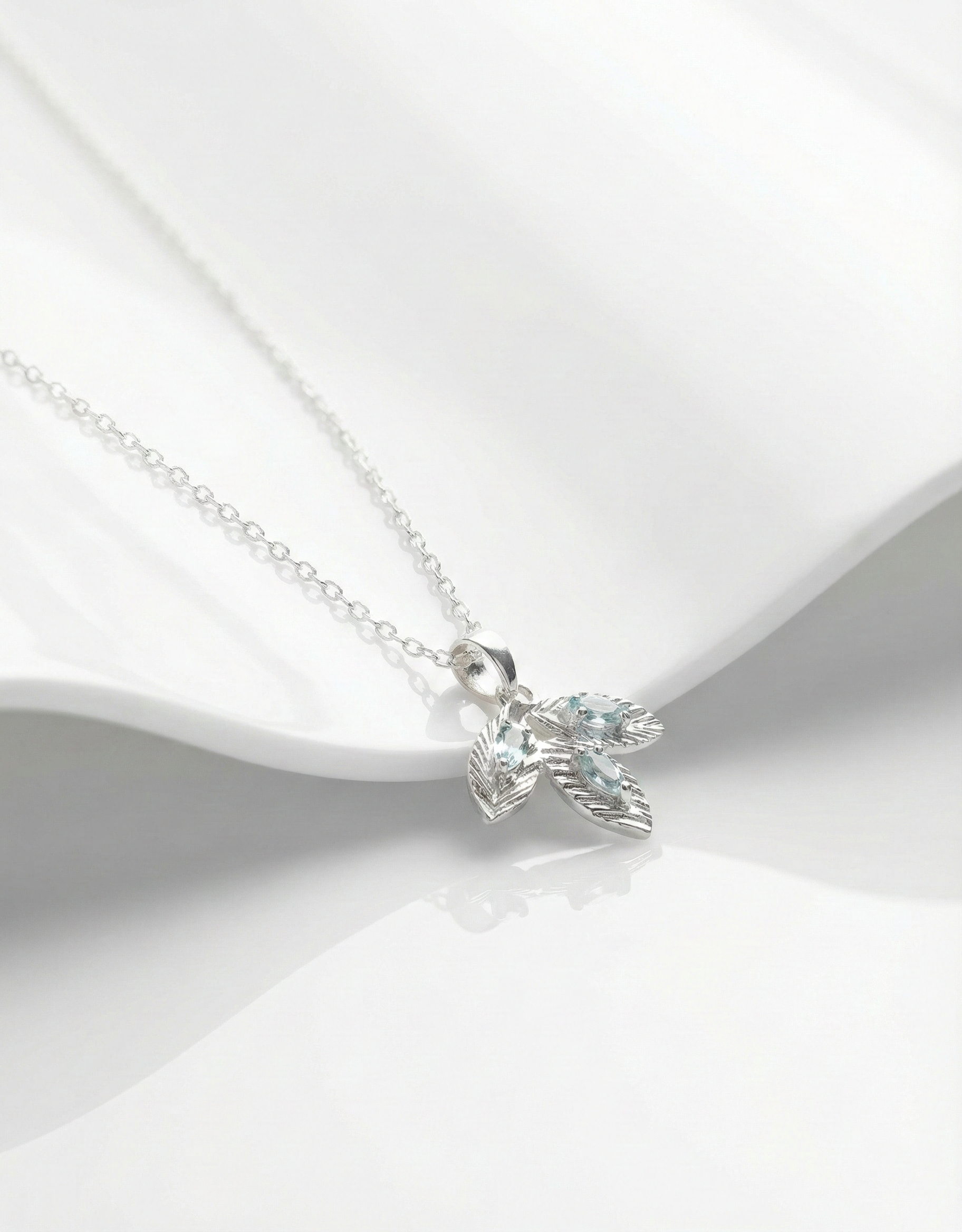 Bloom with grace wearing our Dainty Silver Floral Leaf Necklace. This exquisite piece features a unique trio-petal design accented with sparkling pastel stones in pink and blue, set against a ribbed silver framework. The marquise-cut stones catch the light beautifully, offering a subtle sparkle that complements any outfit. Whether you are dressing up for a brunch or looking for the perfect everyday accessory, this lightweight silver chain adds a sweet, feminine touch to your jewelry collection.
