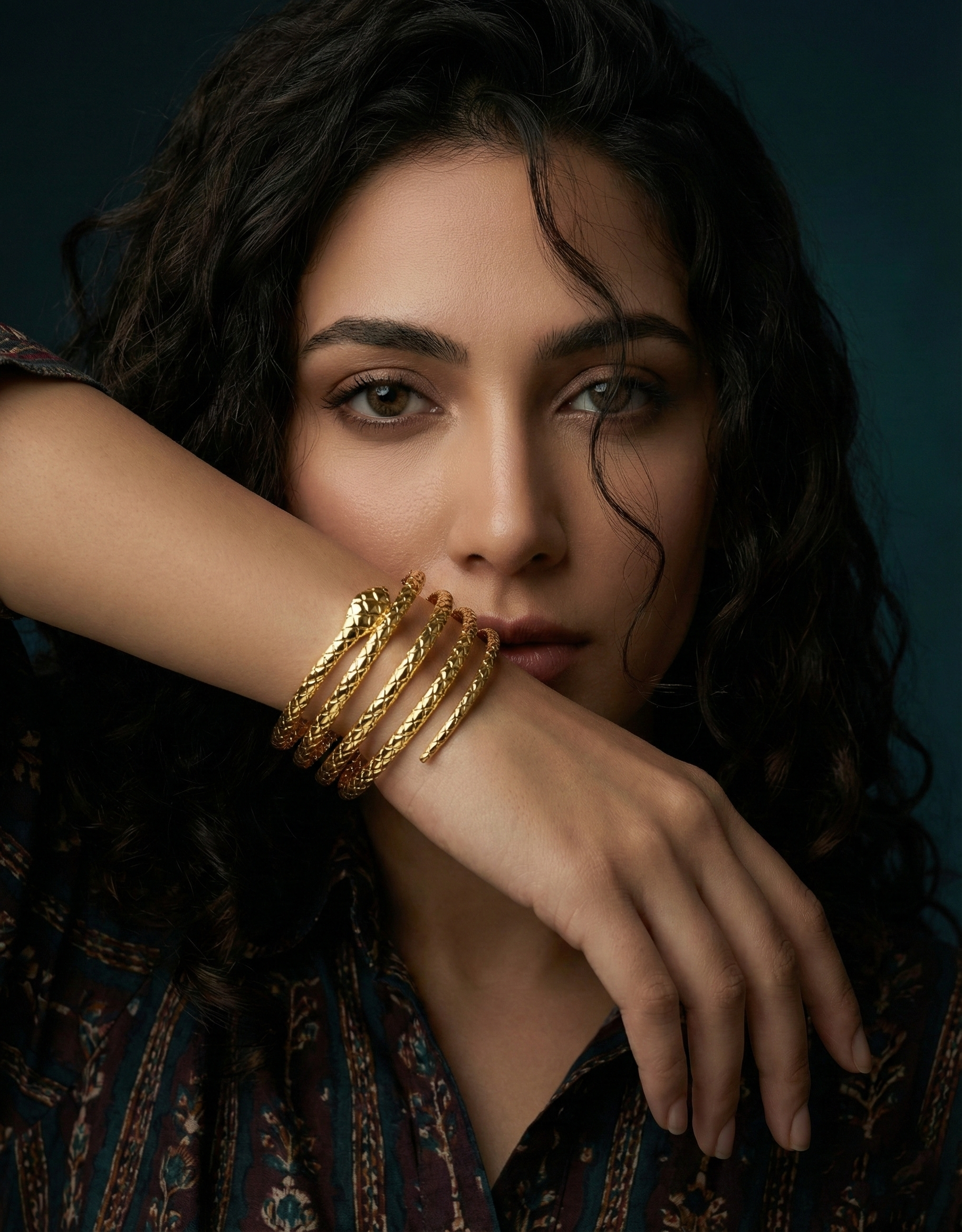 Elevate your jewelry collection with this stunning Gold Coiled Snake Cuff Bracelet. Featuring a bold, multi-row spiral design that mimics the silhouette of a serpent, this bangle is crafted with intricate textured scale detailing that catches the light beautifully. The open-cuff design allows for an adjustable, comfortable fit on any wrist size. Perfect for adding an edgy yet elegant touch to evening wear or elevating a casual outfit, this statement serpent jewelry piece is a must-have for modern fashion lovers."